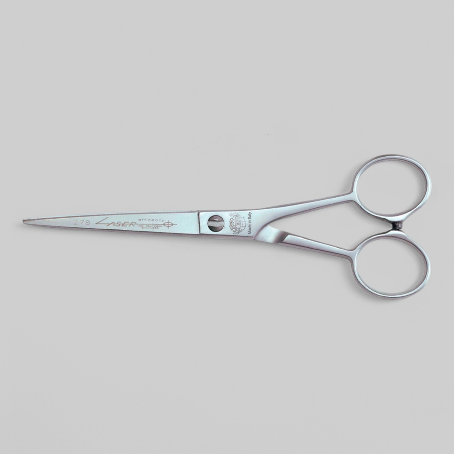 Ножницы прямые Kiepe Laser 6" 278-6 с односторонней микронасечкой. Ножницы классической формы цельнометаллические (итальянская сталь) глянцевые имеют ограничитель хода, патентованный регулируемый винт.