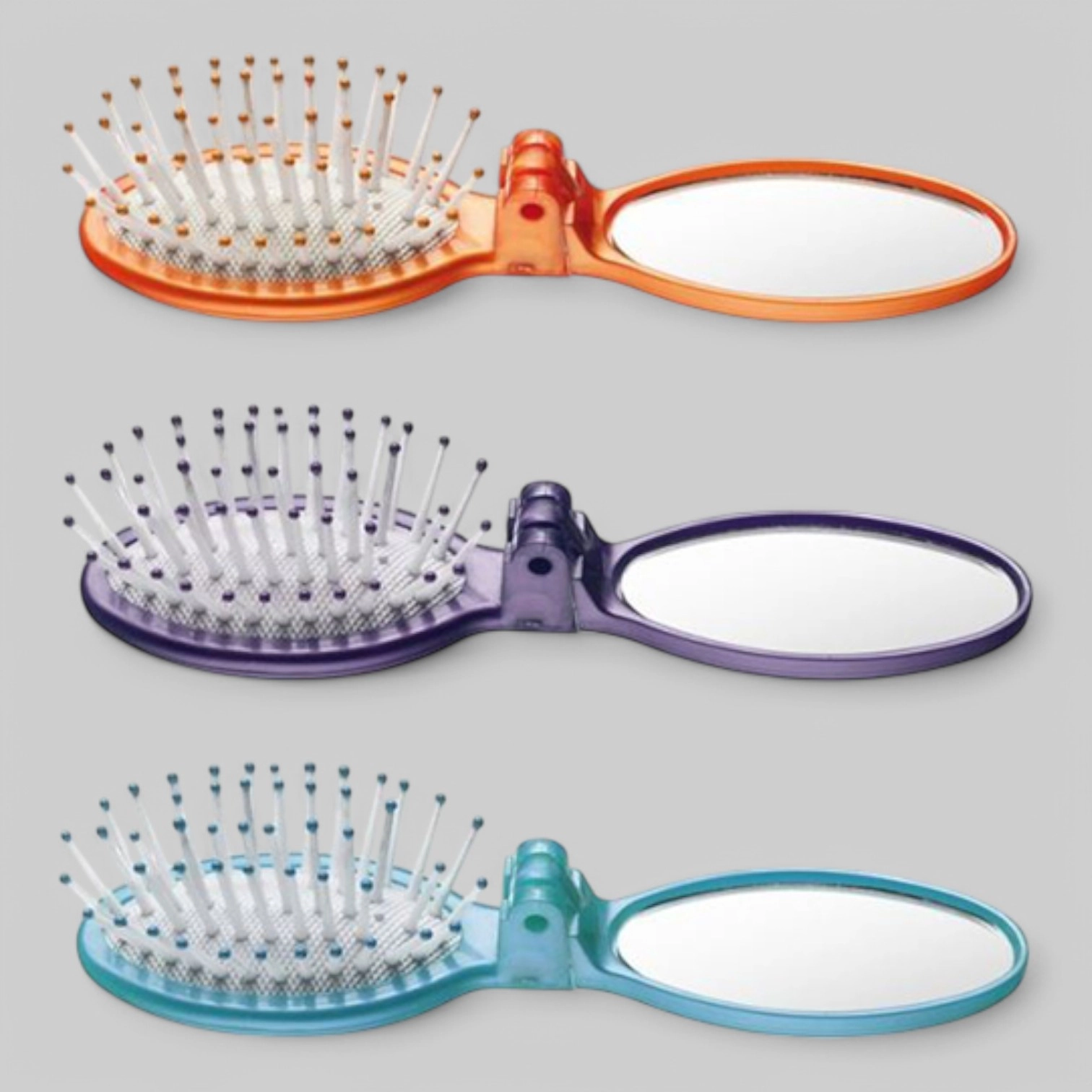 Массажка мини со складывающимся зеркальцем, пластиковые зубья на резиновой основе. овальная 5 рядов