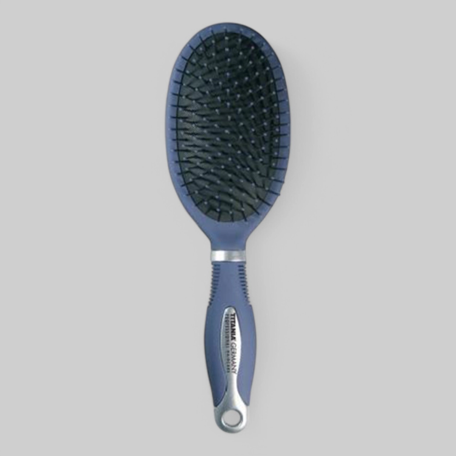 Массажная щетка для волос на резиновой основе, с пластиковыми зубьями, 11 рядов, длина 26см. (матово-синяя)