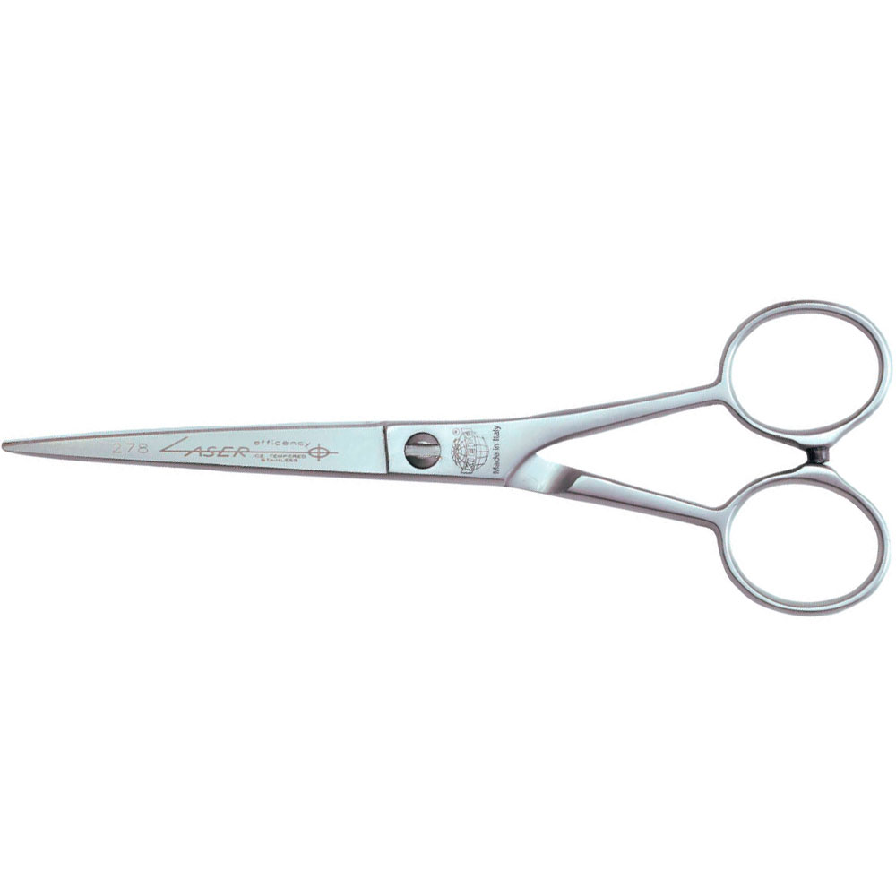 Ножницы прямые Kiepe Laser 6" 278-6 с односторонней микронасечкой. Ножницы классической формы цельнометаллические (итальянская сталь) глянцевые имеют ограничитель хода, патентованный регулируемый винт.