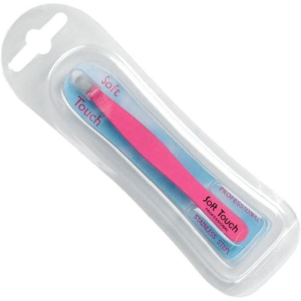 Пинцет "SOFT TOUCH", со скошенными кончиками, с прорезиненным цветным покрытием, размер 3,7. В пластиковой упаковке LUX.