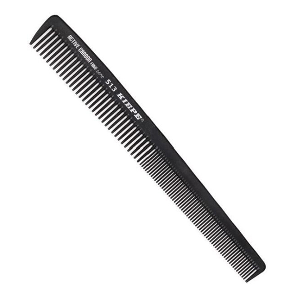 Расчёска "KIEPE ACTIVE CARBON 513" карбоновая, классическая комбинированная для затылочных и височных зон, с антибактериальным покрытием.